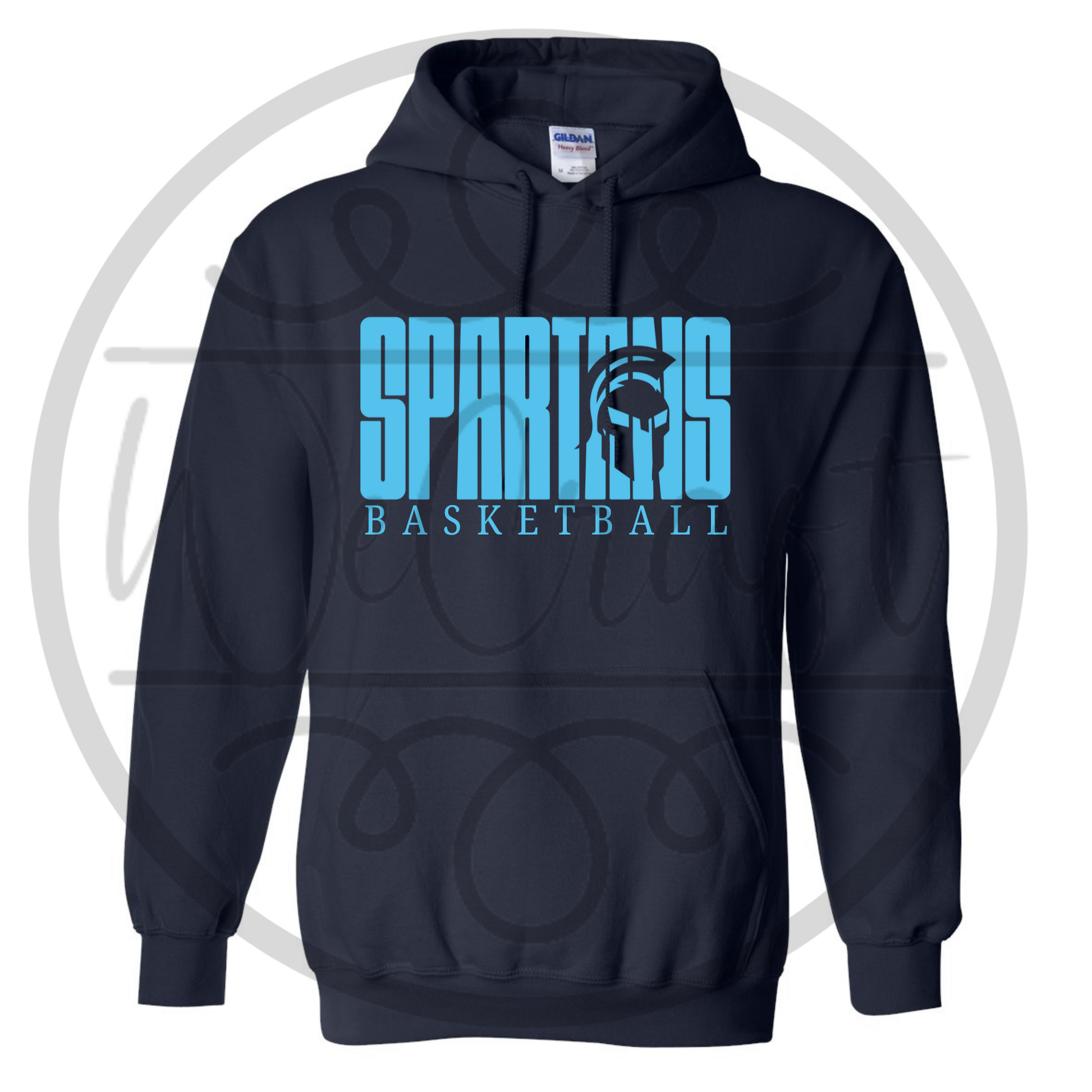 50/50 Navy Hoodie featuring with Spartans Basketball DTF Designs
